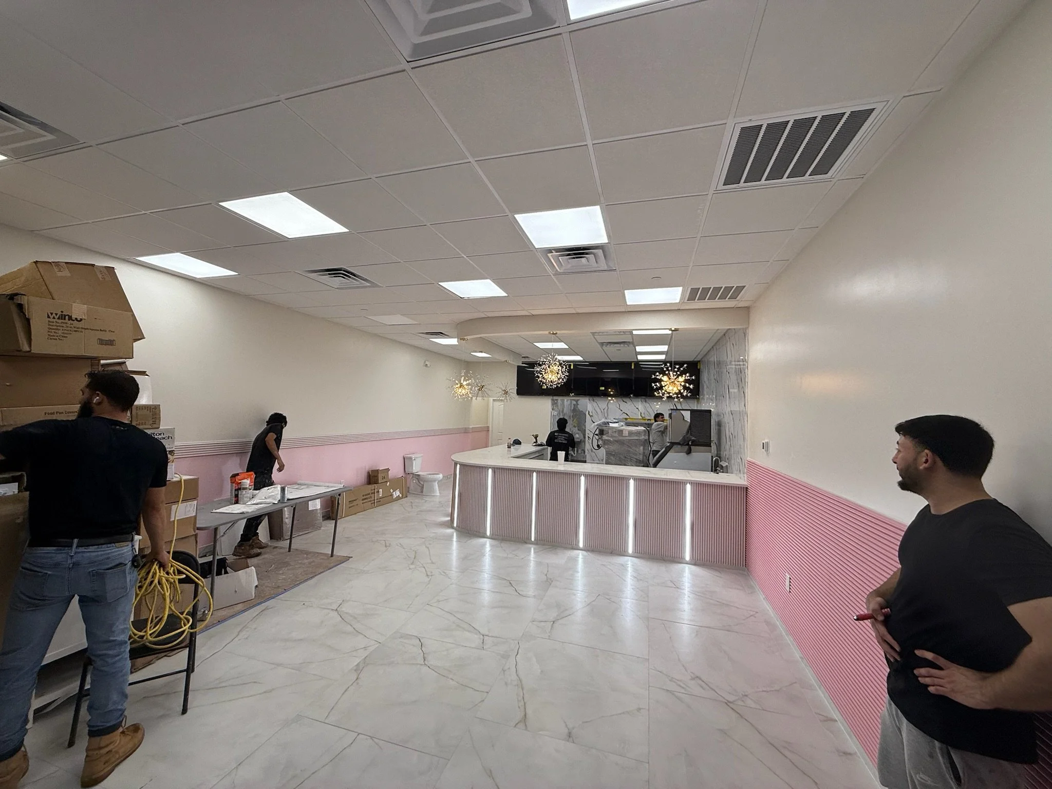 Provided a turnkey electrical package for a new dessert shop including service coordination, panelboards, branch circuits to all kitchen and front of house equipment, decorative lighting, code compliant life safety, and rough in for POS, cameras, audio, and data. Coordinated closely with HVAC, plumbing, millwork, and inspector for phased rough in, ceiling close up, and final.